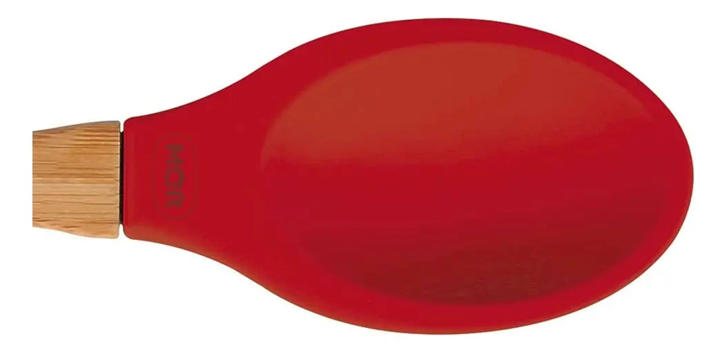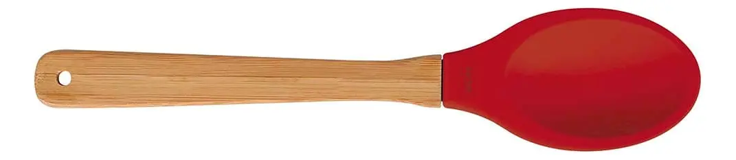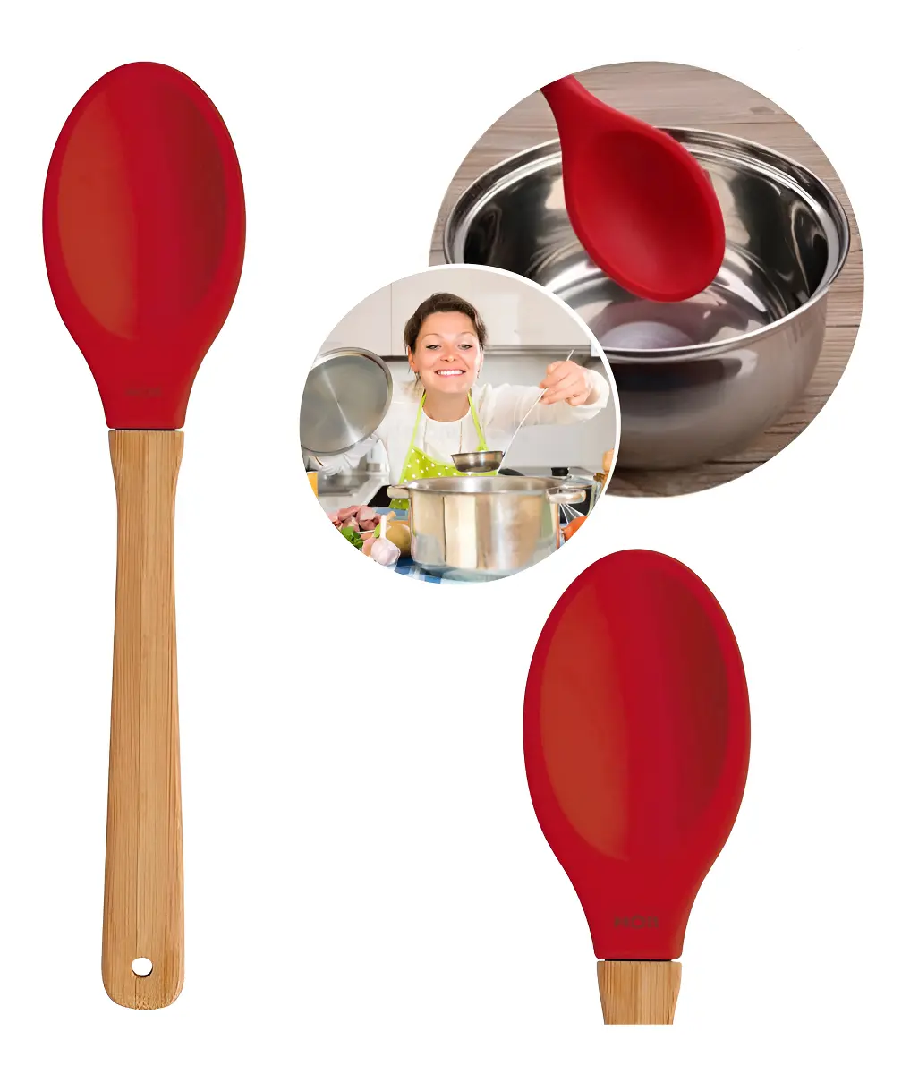 Colher De Silicone E Bambu Antiaderente E Resistente Cabo Vermelho